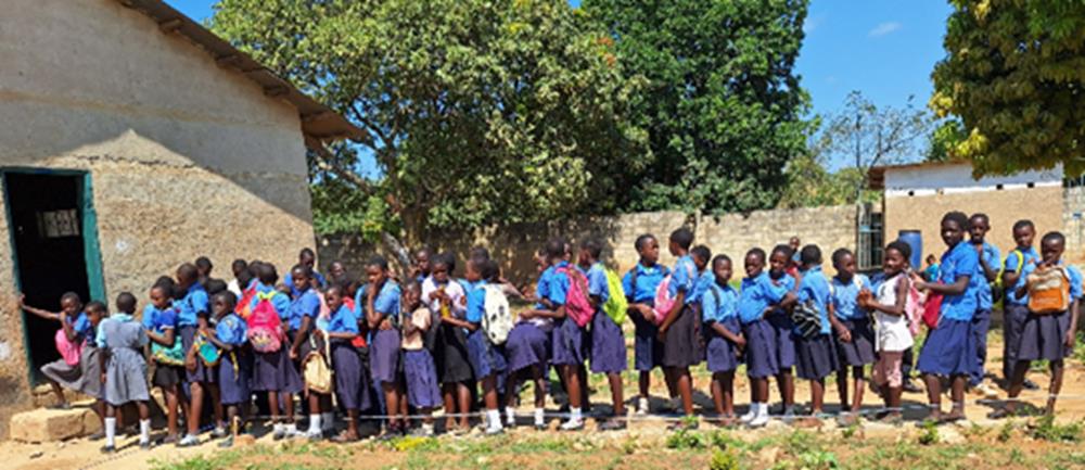 Here are the girls lined up to get into the school building. In Zambia, a typical public-school classroom will have 120 students and one teacher! This is one reason we provide after-school tutoring.